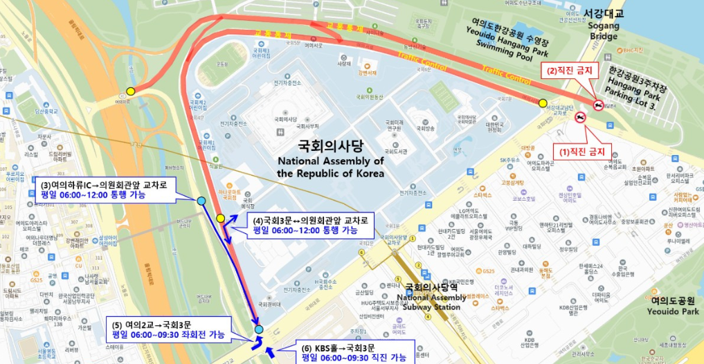 - 국회의사당 정류장, KBS 정류장 등지 이용